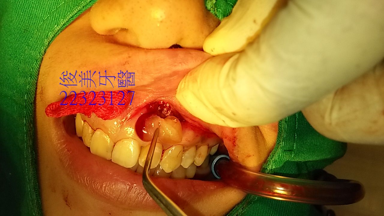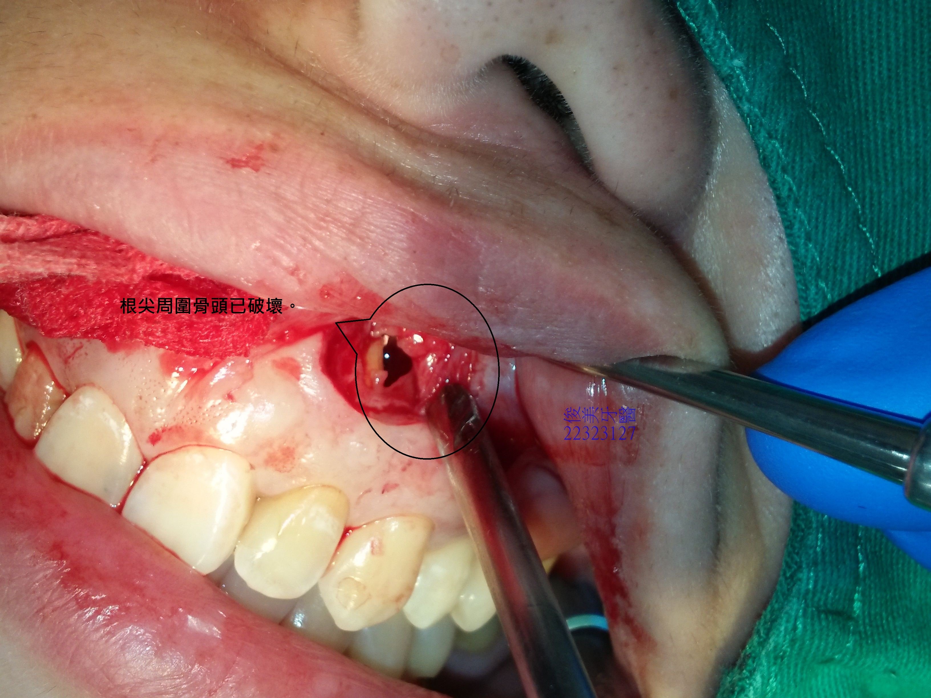 患者左邊根尖打開,明顯可見為空腔,已被細菌破壞。