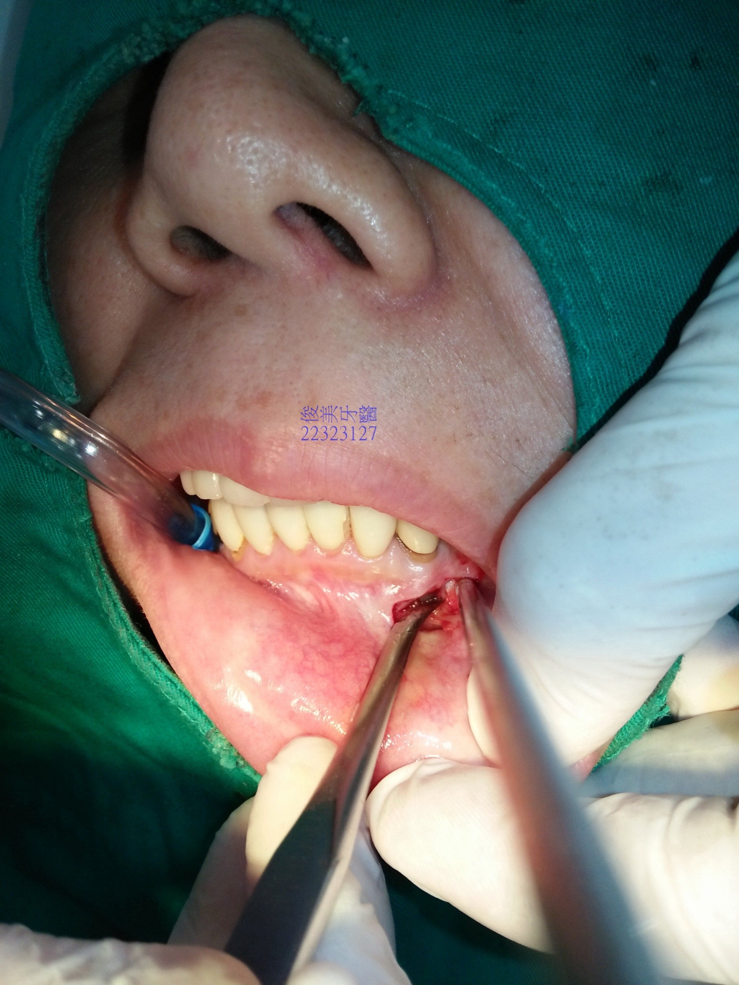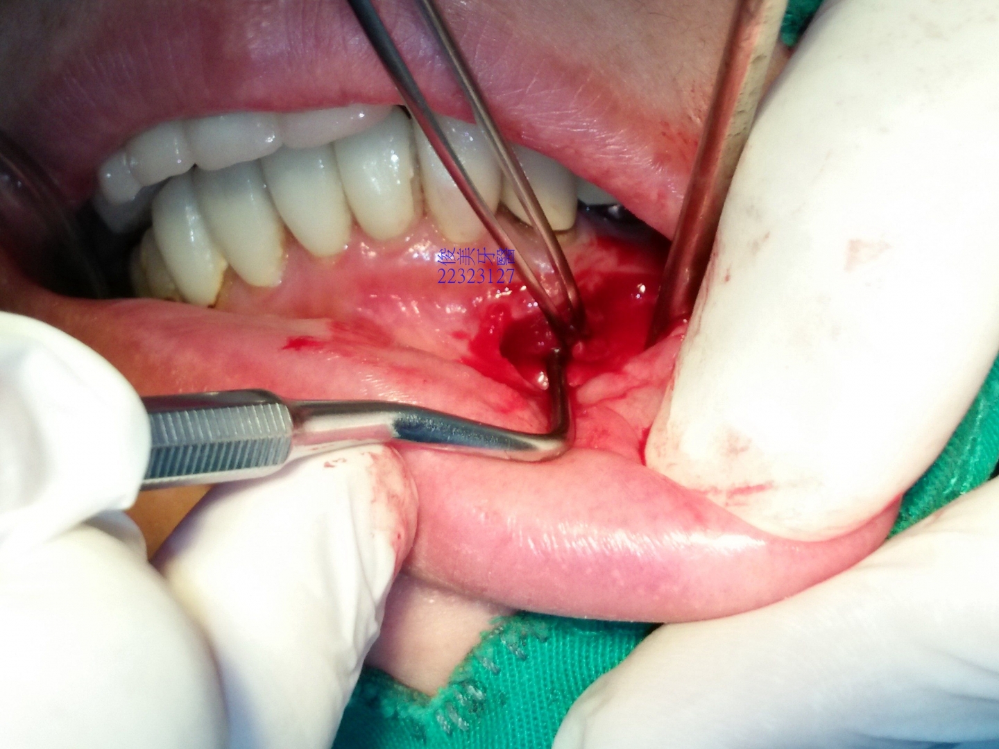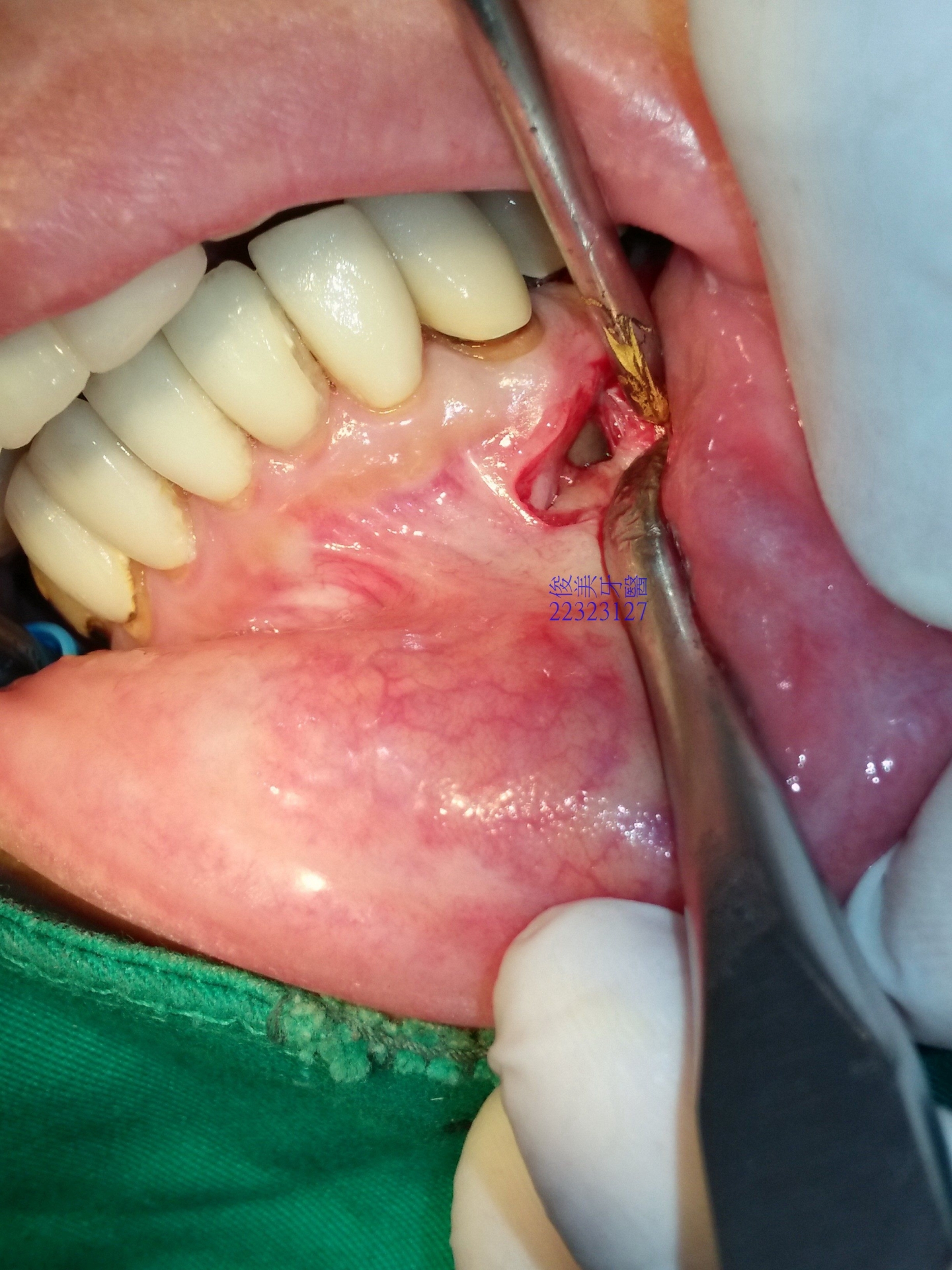 一翻開牙齦就發現不正常組織已穿透骨頭。