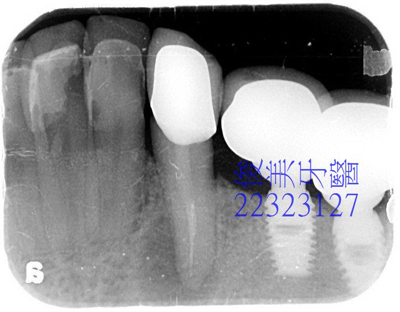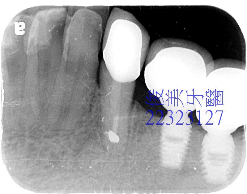 牙根周圍黑影已消失, 出現白色的骨粉顆粒狀,如此可避免囊腫惡化,患者需強力冰敷3天,3個月內暫勿咀嚼這區,