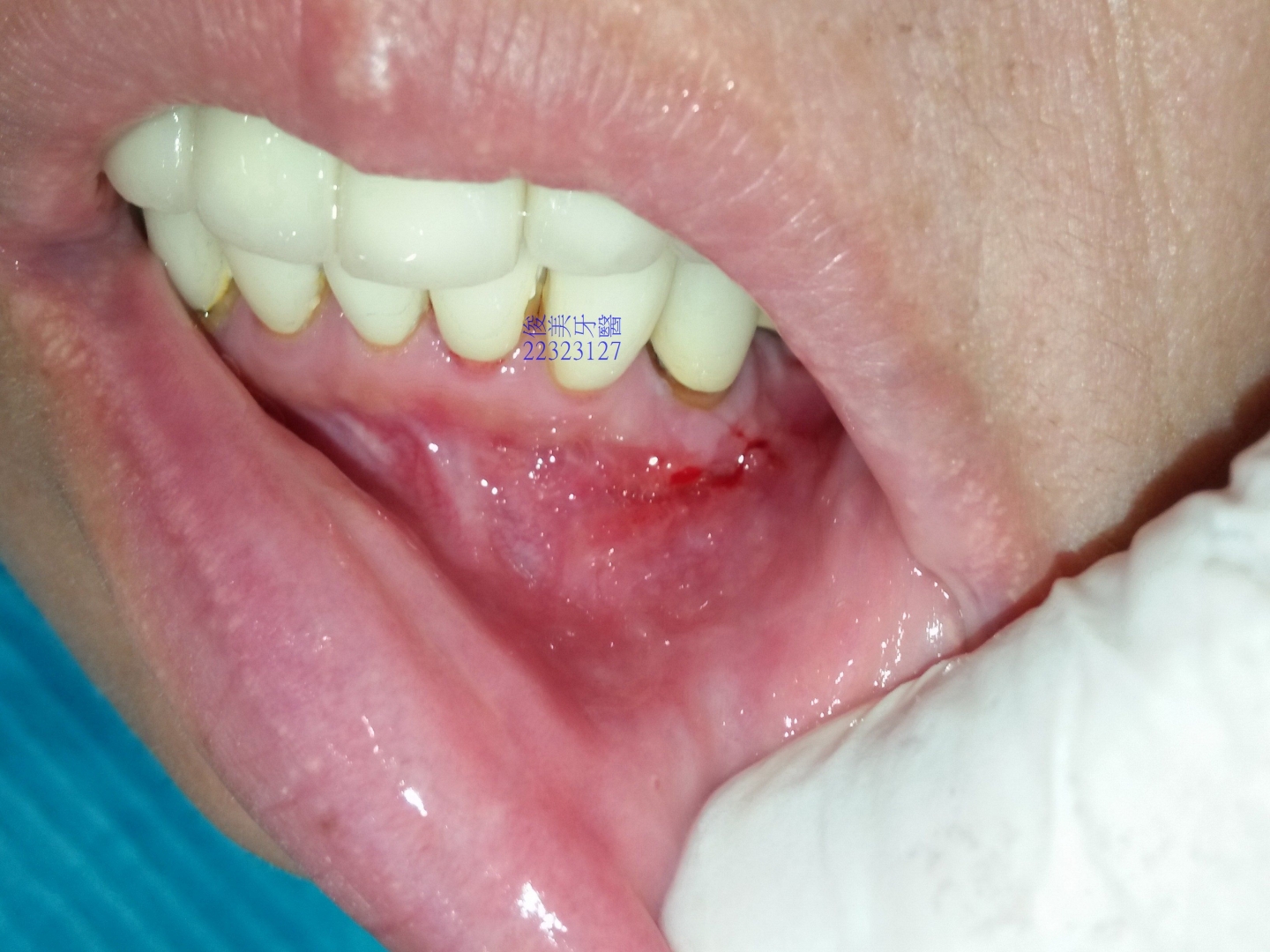 患者多年前抽過神經的牙齒,有病灶,牙根尖底部有病變,檢查時皆有提醒患者注意,直到近期,口腔內出現小腫苞,
