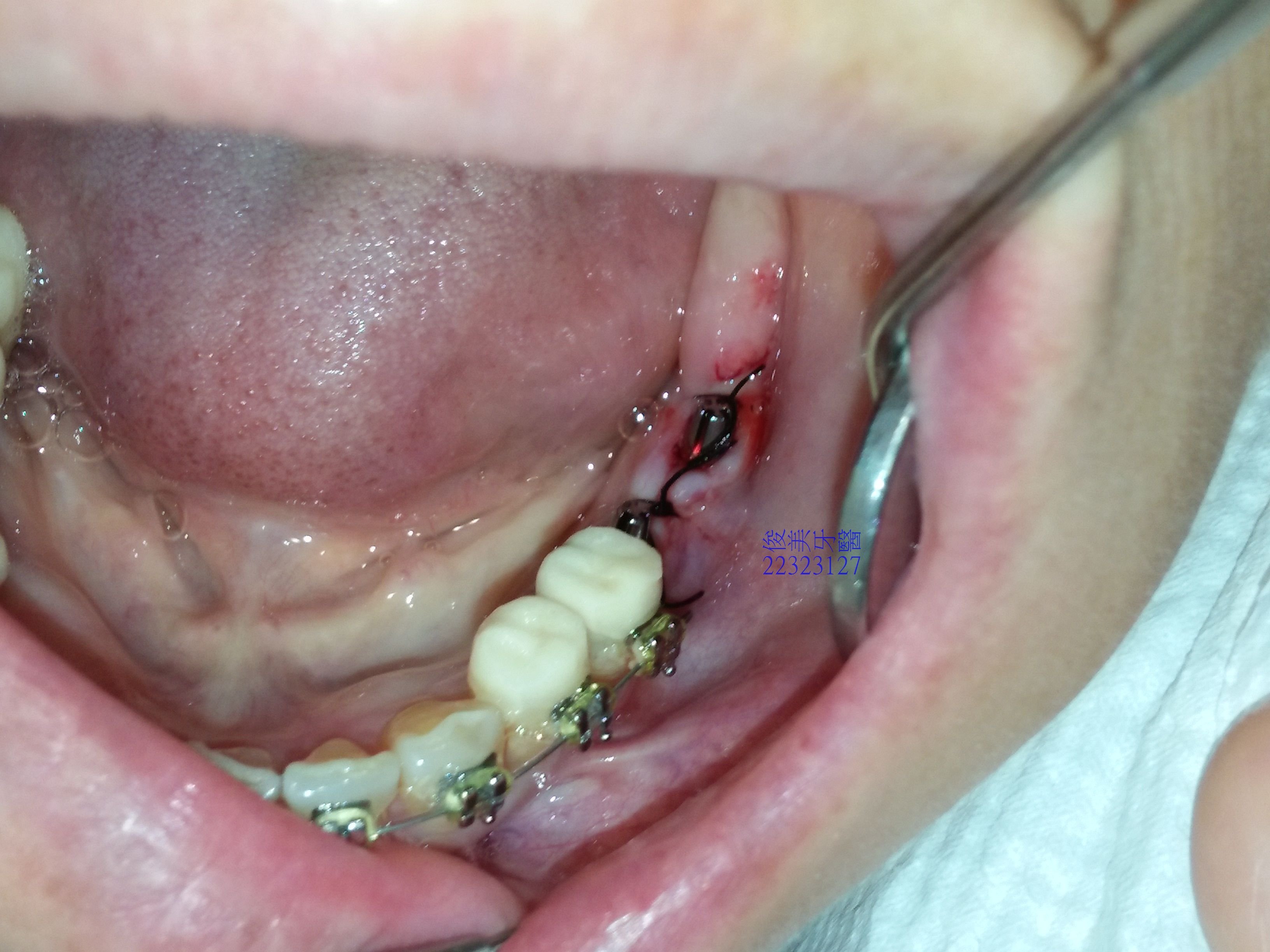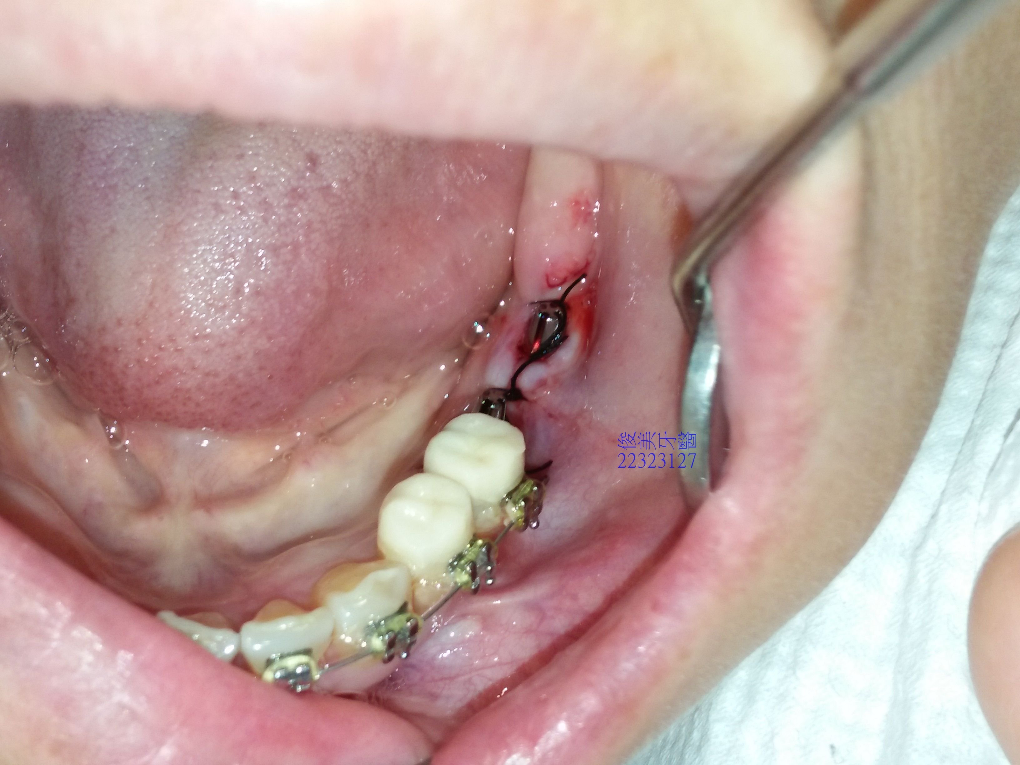 患者進行全口重建療程,治療中.....將左下缺牙採微創植牙手術植入。