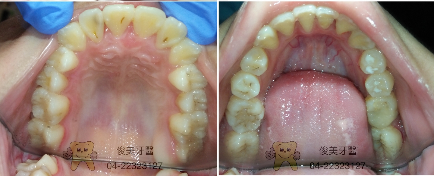 患者牙醫擁擠,不但不易清潔也不美觀,家長希望能獲得改善,但却不想要拔除好的小臼齒,經醫師評估後,